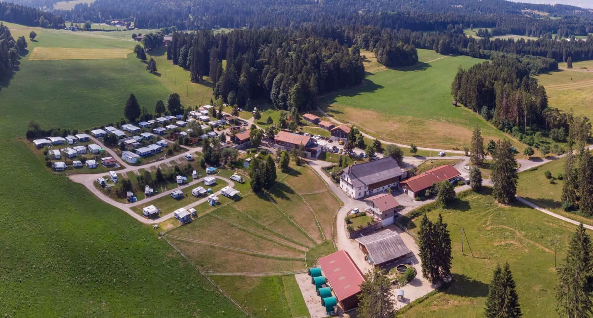 Camping Les Cerneux befindet sich auf 1.000 Metern Höhe im ruhigen Hochplateau bei La Chaux-des-Breuleux. Das Gelände liegt idyllisch zwischen Wiesen und Wäldern. Diese Lage macht es ideal für Menschen, die Entspannung und Nähe zur Natur suchen.
