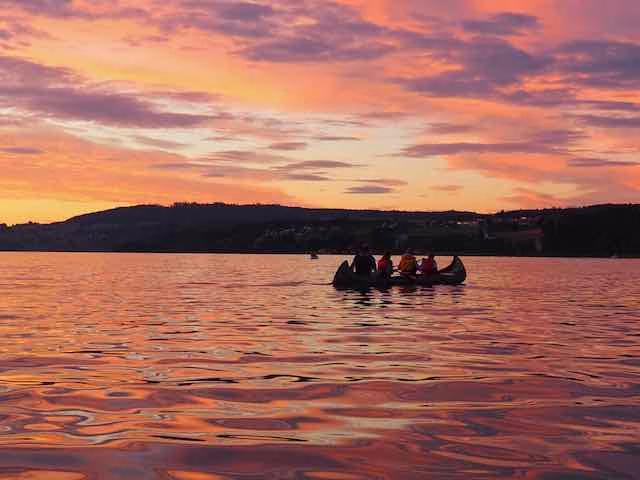 Gemütliche Kanutour auf dem Hallwilersee in den Abend hinein. Geniesse leuchtende Wolken bei Sonnenuntergang, und stille Nachtstimmungen auf der Rückfahrt. Unterwegs halten wir an für einen kleinen Dessert und interessante Gespräche am Feuer.